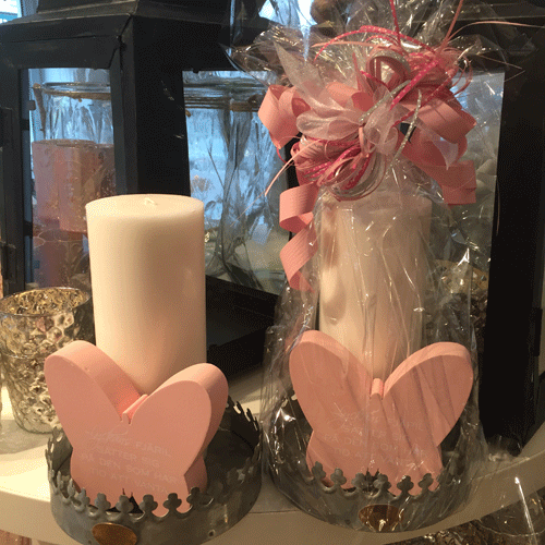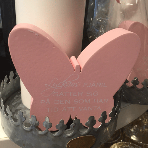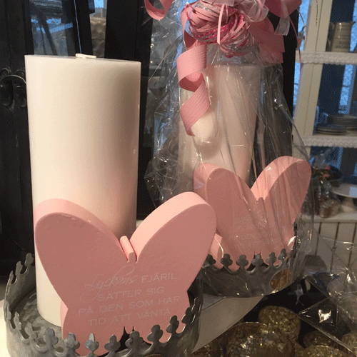 Det är en fjäril med text och ett stort stearinljus från Affari som kommer att brinna lääänge!