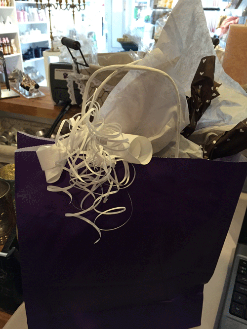 Efter du valt present, går du in på fliken Presentinslagning och väljer presentpapper så slår vi in presenten och skickar den till dig i ett extra fint paket.