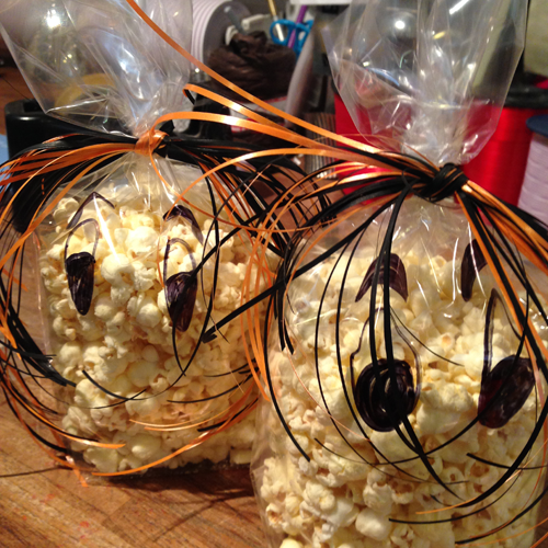 Popcorn är gott i alla lägen, här i Halloweenkostym!